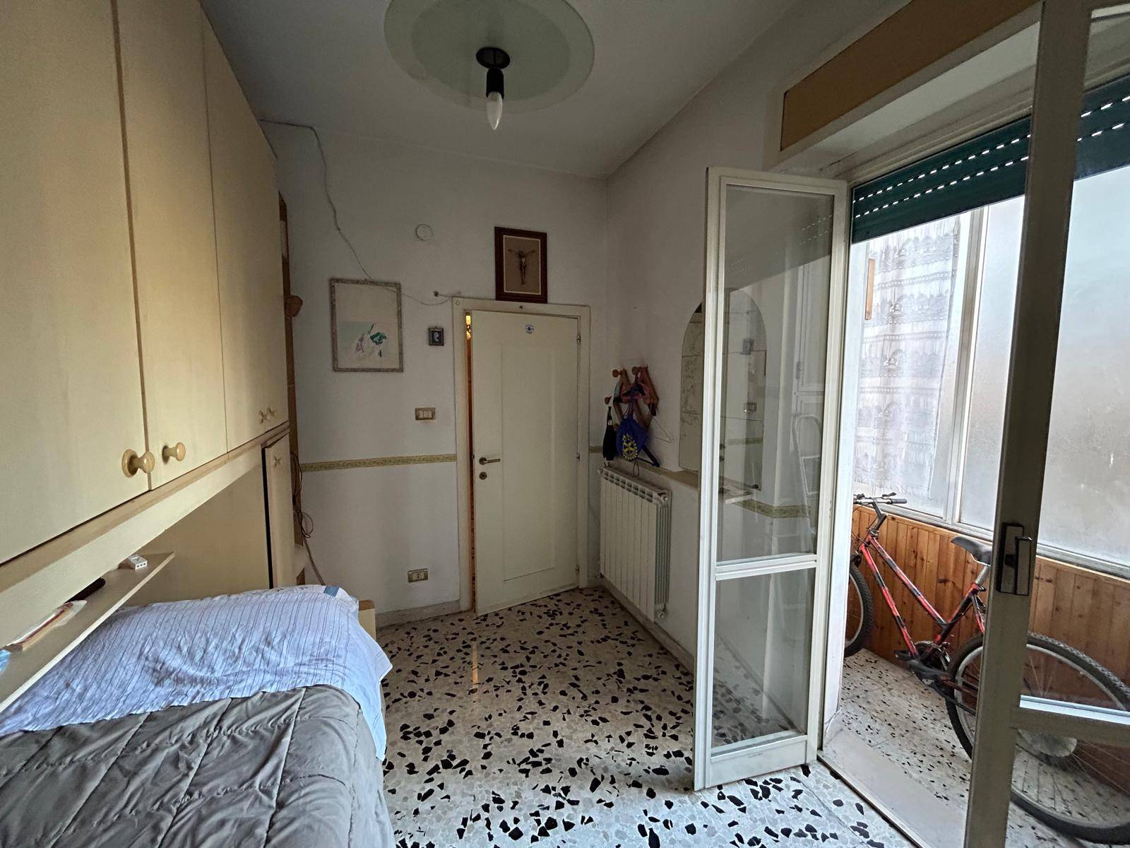 L'abitazione è composta da ingresso, soggiorno, cucina, due camere da letto, veranda e bagno, con finiture dell'epoca che offrono la possibilità di personalizzare completamente gli ambienti .