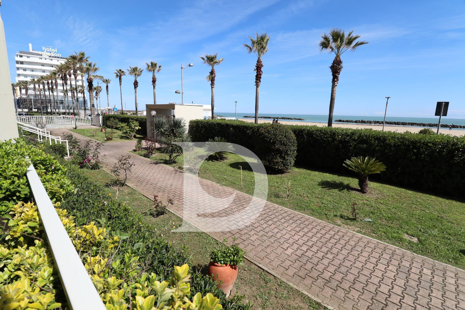 MONTESILVANO - Lungomare in prossimità dei grandi Alberghi , proponiamo graziosissimo appartamento fronte mare in uno dei tratti costieri più bello ed attrezzato dell'intera spiaggia composto da un ingresso, soggiorno con angolo cottura, camera , bagno, due comodi terrazzi di cui uno fronte mare con vista mozzafiato sull'Adriatico. L'appartamento si trova in un piccolo condominio ed a servizio pertinenziale un comodo garage a cui si accede dal cortile recintato .